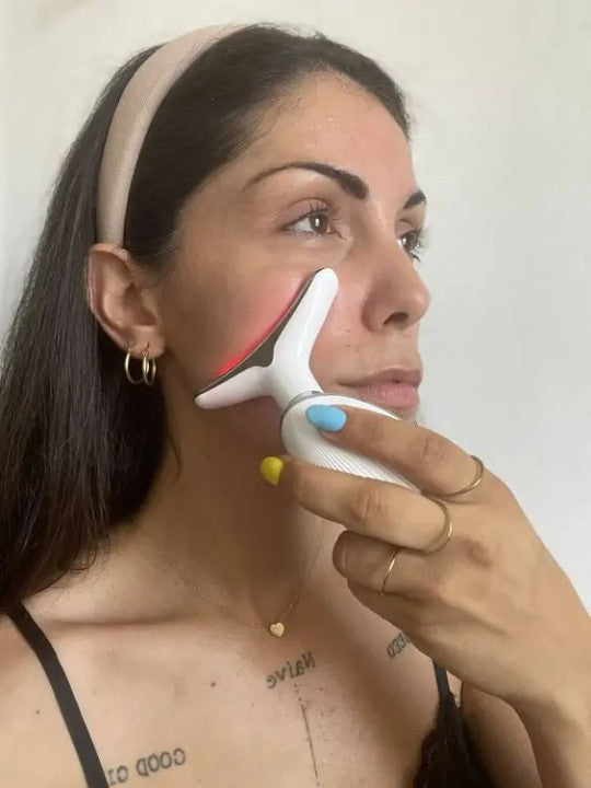 El masajeador facial LuminSkin™ estimula tu piel con calor y tecnología LED, mejorando la circulación y dándole un aspecto más firme y luminoso desde los primeros dias.